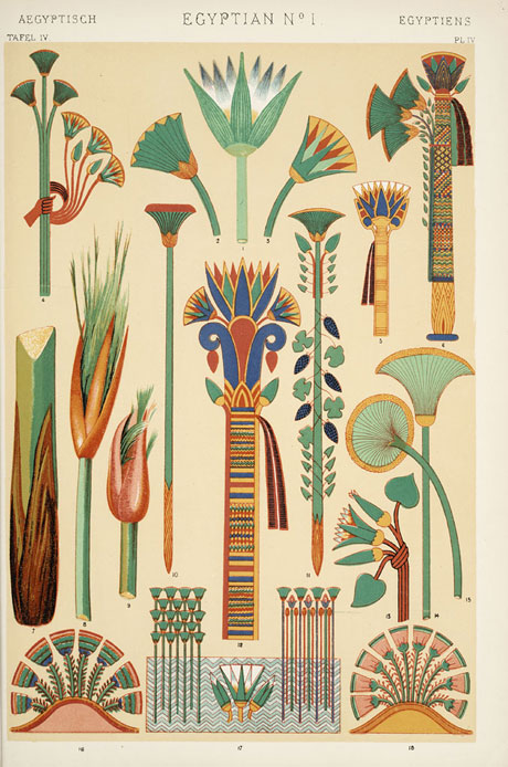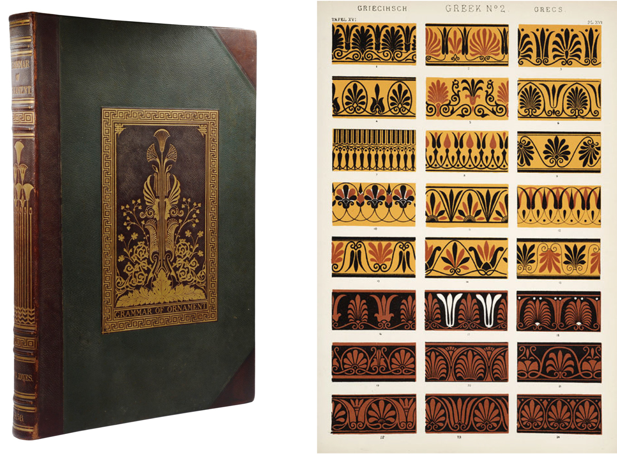 オーウェン・ジョーンズの「イギリス近代装飾史コレクション」の1つ。出版の背景には1851年にロンドンで開催された第1回万国博覧会の影響と19世紀中葉のヨーロッパにおける趣味の転換を見ることができる。内容は未開部族の装飾文様から、エジプト、アッシリア、ギリシャ、ポンペイ、ローマ、ビザンティン、アラビア、トルコ、アルハンブラ、インド、中国、ケルト、中世、ルネサンス、エリザベス朝、イタリアの文様に続き、自然と葉と花の章で終わる。非西欧圏の装飾文様を多く紹介していることと、デザインの源泉である自然を観察することを示唆している点が興味深い。また19世紀後半にかけて出版された装飾芸術に関する一連の著作物を生むきっかけともなっている。