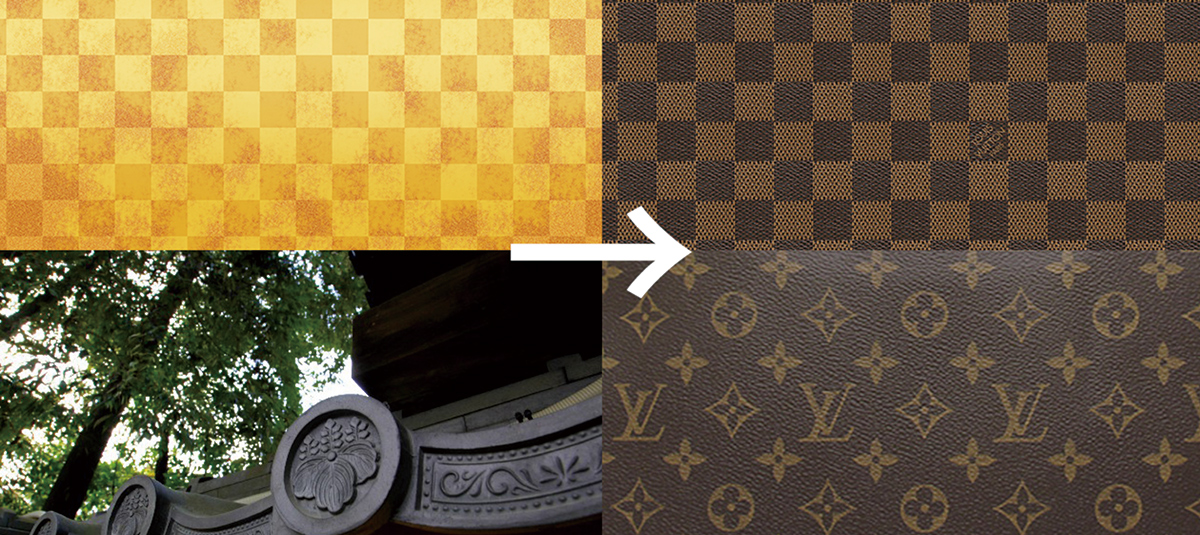 ジャポニスムは画家を初めとしたヨーロッパの芸術家にも多大な影響を与えた。たとえば、ゴッホによる『名所江戸百景』の模写や、クロード・モネの「ラ・ジャポネーズ」、ドガを初めとした画家の色彩感覚にも影響を与えた。なお現在も製造、販売されているフランスのかばんメーカーのルイ・ヴィトンの「ダミエ」キャンバスや「モノグラム」キャンバスも、当時のゴシック趣味、アール・ヌーヴォーの影響のほか、市松模様や家紋の影響もかかわっているとされる。