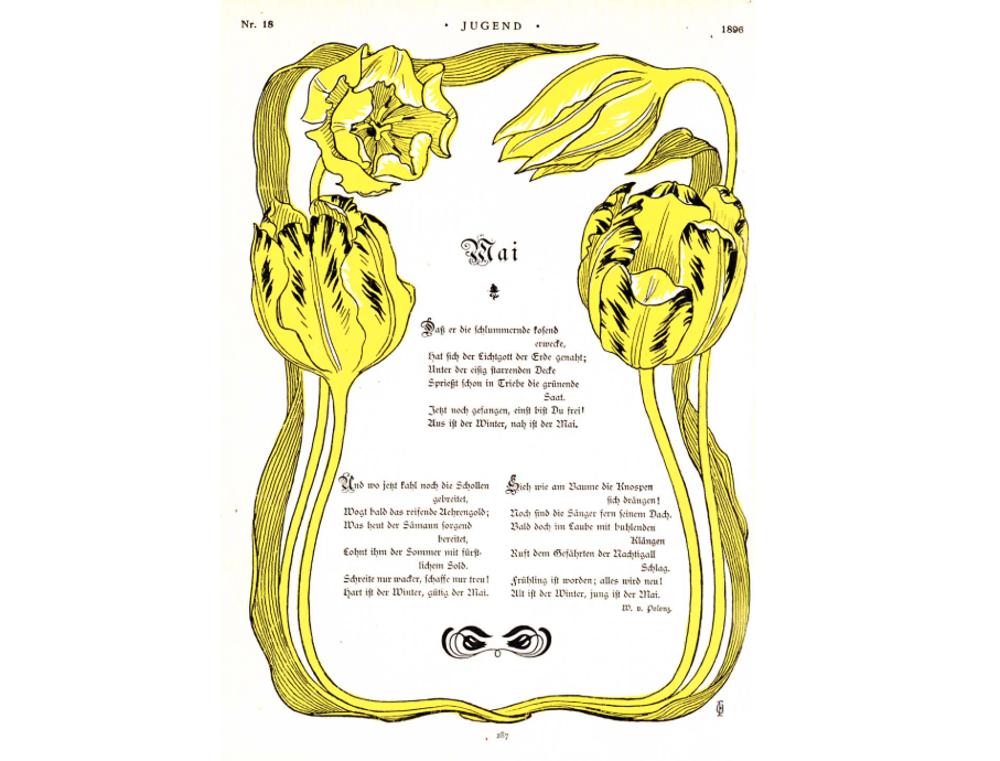 雑誌『ユーゲント』1896年創刊号から1940年まで刊行されたとの記録が残っている。この雑誌のフルネームは、“Jugend. Mu nchner Wochenschrift fu r Kunst und