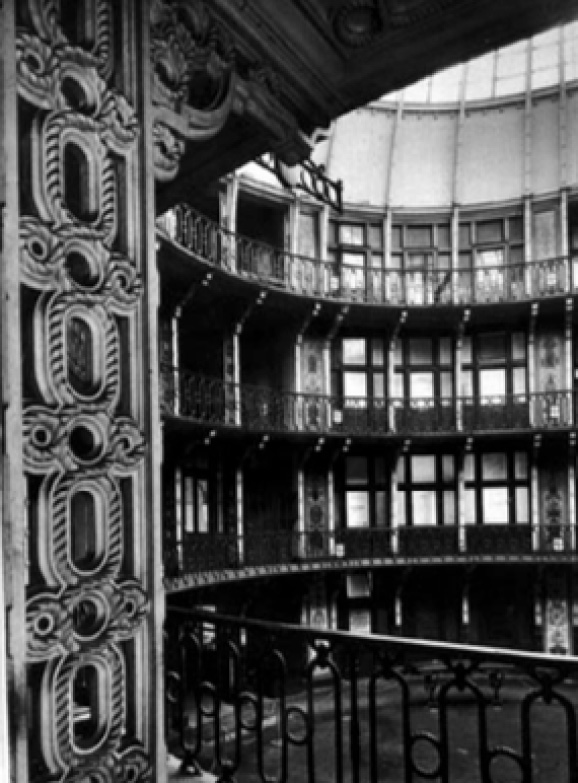 植物模様のマジョリカタイルで壁面を覆ったアール・ヌー ヴォー風の集合住宅