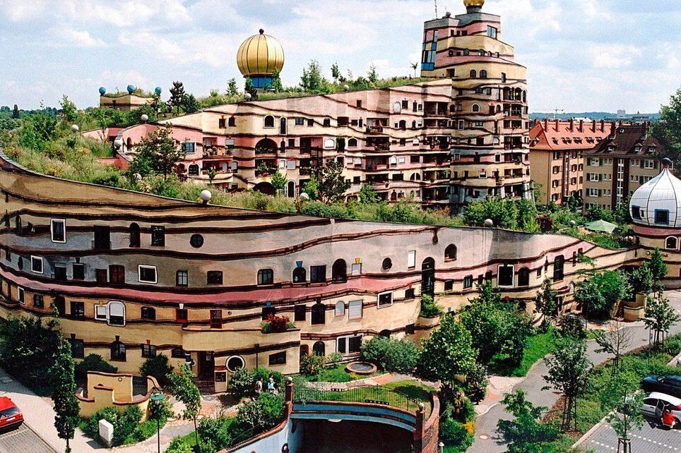 大英帝国ヴィクトリア女王の孫にあたるエルンスト・ルードビッヒがエッセン・ダルムシュタット大公となり、1899年にドイツやオーストリアから7名の画家や建築家を招き芸術活動を開始した。オーストリア分離派のヨーゼフ・オルブリッヒ、アンリ・ヴァン・デ・ヴェルデや、新進のピーター・ベーレンスらはそれぞれの自宅を設計して「芸術家村」を作り上げ「ルードビッヒ館1901」やルードビッヒ大公とマティルダ妃の成婚を記念する「大公成婚記念塔1905」などが建てられ、この一帯がユーゲントシュティル美術のメッカとなった。成婚記念塔の横には、ロシア正教会の黄金のドームが光り輝いている。